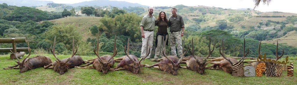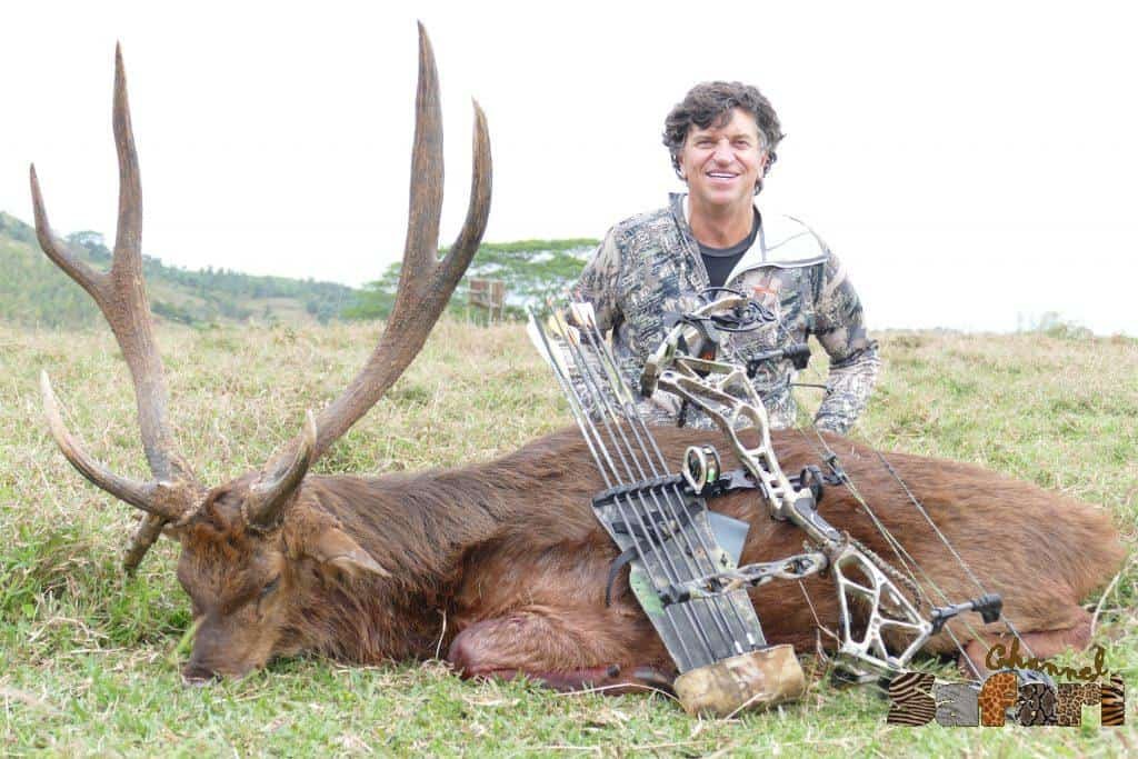 Ловът щеше да започне веднага след инструктаж, на който чрез жребий се разпределиха пусиите. Гонката започна с кучета и гоначи по поляните между гъстообраслите долчинки. Елените бяха принудени да напуснат скривалищата си и сега се носеха, препускайки между пусиите. От няколко пусии се чуха далечните изстрели. В близост до пусията на Арчи засега не се бе появявало нищо. Животните преминаваха на сто – сто и петдесет метра от нас. От високият стенд, изработен от дърво с много твърда дървесина се виждаше почти на километър. Арчи държеше лъкът си в готовност, но скоро го замени с карабина. Беше безмислено дори да опитва на дистанциите, на които животните преминаваха. Той имаше квота да отстреля едно младо мъжко животно. С карабината това въобще не бе проблем и още на петата минута ловеца бе повалил едно животно с къси и тънки рога. Ловния водач слезе от стенда и отиде да провери селекционното животно. Когато го доближи на две крачки спря и го загледа с почуда. После го приближи и вдигна единият му крак. След като го пусна, пак погледна към главата му, окичена с малки рогца. Професионалният ловец изглеждаше много, ама много объркан и дори започна да се чеше по главата в усилието си да проумее нещо. Скоро разбрахме какво е причинило объркването му. Отстреляният млад мъжкар всъщност се бе оказала женска с рога. Такава мутация никой не бе виждал през последните 17 години. Това изключително рядко отклонение от природните закони беше с шанс да се случи половин милион към едно. Сега можем ли да отречем че ловния ни късмет ни беше споходил на остров Мавриций ?! След края на гонките направихме снимки с всички повалени животни пред ловния дом.
