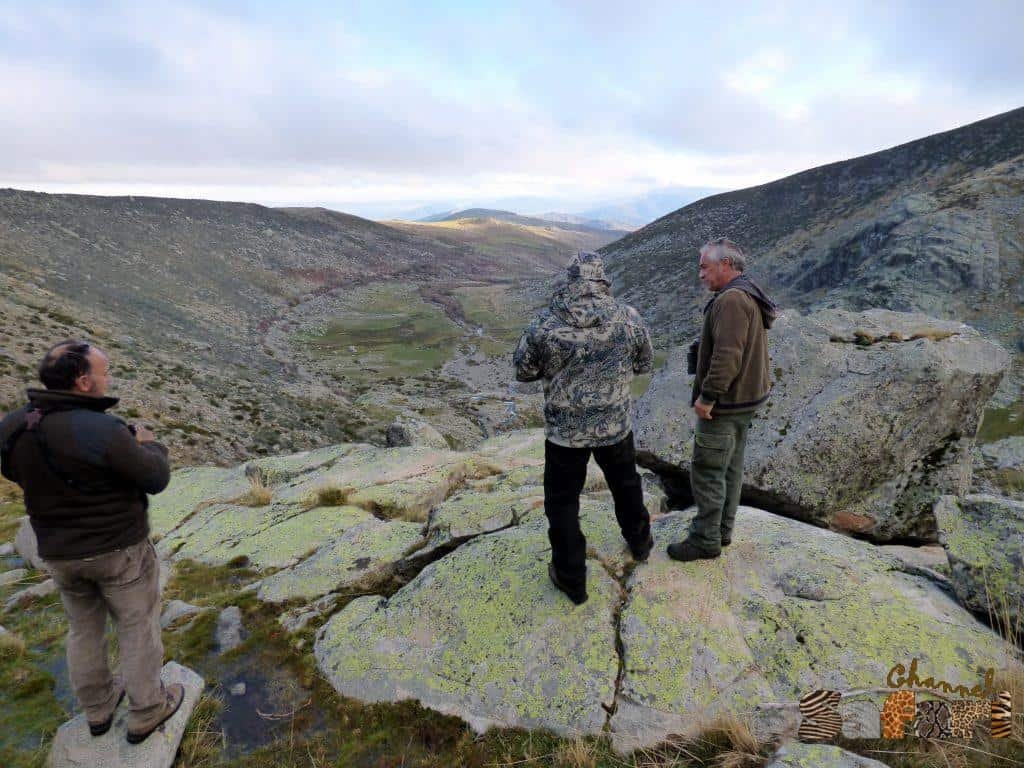 Пътят с малкия джип в планината ни се стори доста къс въпреки, че на високопроходимата машина й отне около час да ни прекара през тесните проломи и виещите се над стръмните, каменни урви завои. На места не можехме да повярваме, че возилото ни ще може да премине край надвисналите над пътя канари. Когато изкачихме билото на първия скалист връх, пред нас се разкри истинския облик на планинските вериги в Гредос. Не бях сбъркал в преценката си, терена бе много труден за изкачване и близкото присъствие на лешоядите, кръжащи над возилото ни още повече нагнетяваха атмосферата. Скоро пътя /доколкото широката колкото колата каменна пътека може да се нарече път/ започна да се спуска в широк каньон. Сиро спря колата и ни даде знак да се приготвим да продължим пеша. Докато приготвяхме снаряжението си и екипировката за прехода, той започна да оглежда терена в дъното на пролома. Край бързата планинска река откри с бинокъла си няколко козирога и ни ги показа. Според него първият сняг, покрил билото по високите части на планината ги бе принудил да се придвижат в ниското. Това беше невероятно хубава новина за всички ни, защото щяхме да пропуснем дългия и опасен преход към върховете срещу нас. Обнадеждени от добрата възможност започнахме с бодра стъпка похода си надолу по каменистия път. Точно, когато стигнахме дъното на каньона открихме на около 300 метра от нас на срещуположния бряг на реката няколко животни, които спокойно пасяха. Наблюдавахме ги известно време. 3 бинокъла – този на Пит, на Сиро и на официалния представител на горското търсеха сред тях възрасто животно с достойни трофейни качества. Оглеждането не остана напразно, Пит бе видял един хубав козирог. Сиро обаче не беше съгласен да отстрелят това животно, защото според него щяхме да видим още по-добри от него.