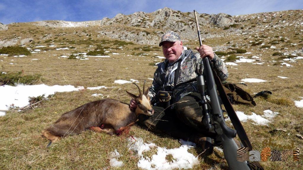Аз бях раздвоен – от една страна той се подготвяше за изстрел, а в съседство на около 30 метра от нас два мъжкаря се готвеха да се сбият. И тъй като не исках да изпусна и двете, взех соломоновото решение да снимам и с двете камери тези различни ситуации едновременно. Разстоянието до голямото трофейно животно бе около 150 метра. Двата мъжкаря точно се засилваха един към друг, когато изстрелът проряза спокойната долина и всички животни се разбягаха. Айбексъ,т когото Пит бе уцелил диагонално през гръдния кош подскочи и пробяга около тридесетина метра преди да падне и да издъхне. Бяхме много развълнувани от бързият ни успех. Часът беше точно 10. 45 , а ние вече имахме 12 годишен Гредос айбекс с трофей, който по-късно бе оценен със златен медал. Направихме професионална фотосесия под нетърпеливите погледи на огромните лешояди, събиращи се отвсякъде. Големите птици кръжаха над нас и очакваха своят обяд. Козирозите имат много вкусно месо, но само, когато са извън брачния сезон, а сега те определено не ставаха за ядене. Сиро щеше да остави силно миришещата мръвка на защитените птици. Както в България, така и тук в Испания под натиска на „зелените“ правителствените чиновници обръщат повече внимание на големите мършоядни птици, отколкото на каквото и да е друго живо същество.