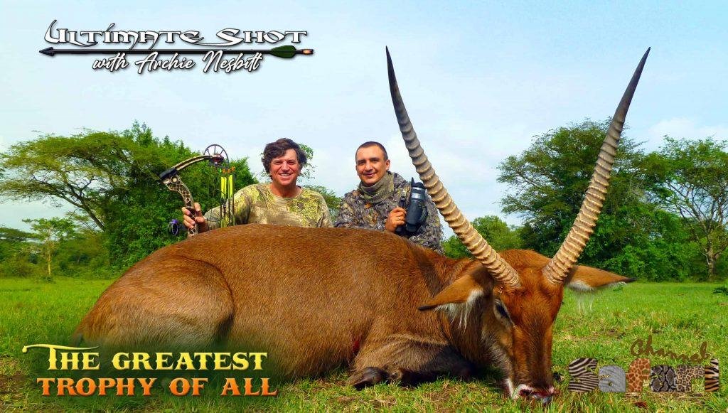 After slogging Katonga’s marshes Archie arrows the biggest bow‑taken waterbuck ever—third largest by any weapon. History is made.
