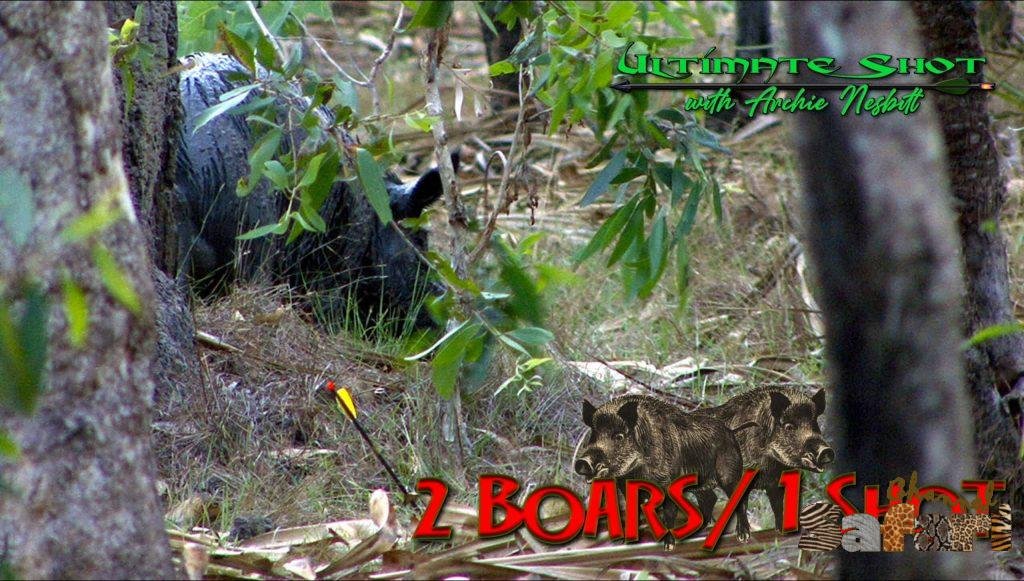 Remote Aussie Outback: in 20 minutes Archie arrows four pigs and a buffalo—including the legendary double‑kill where one arrow pierces two boars.
